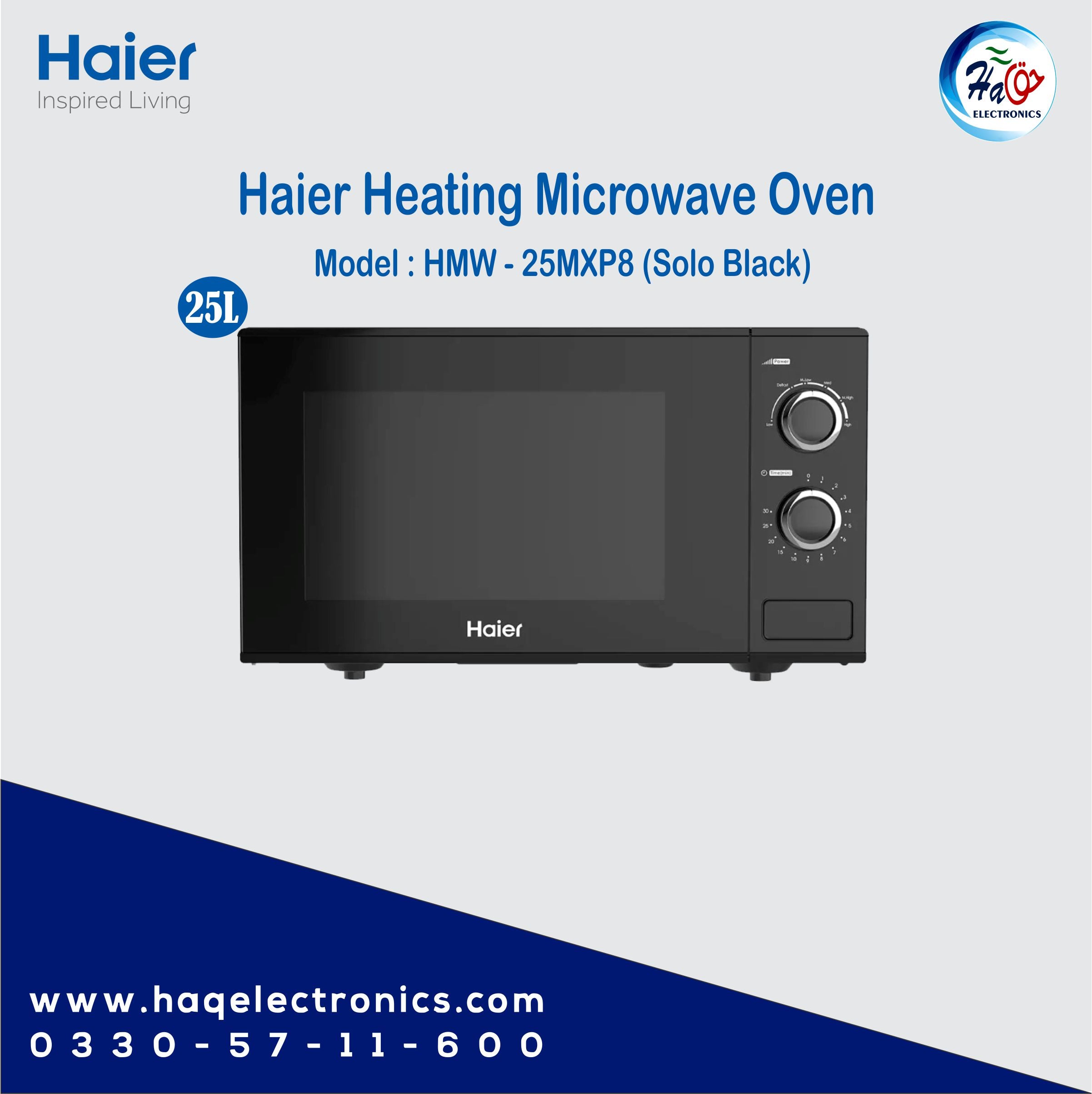 The Haier Microwave Oven HGL-25MXP8 from Haier's Solo Series is designed to provide powerful and efficient cooking solutions for modern kitchens. With a 25-liter capacity, this microwave is ideal for larger households or those who need extra space for cooking and reheating. It offers a blend of advanced features and a sleek design, making it both functional and aesthetically appealing.