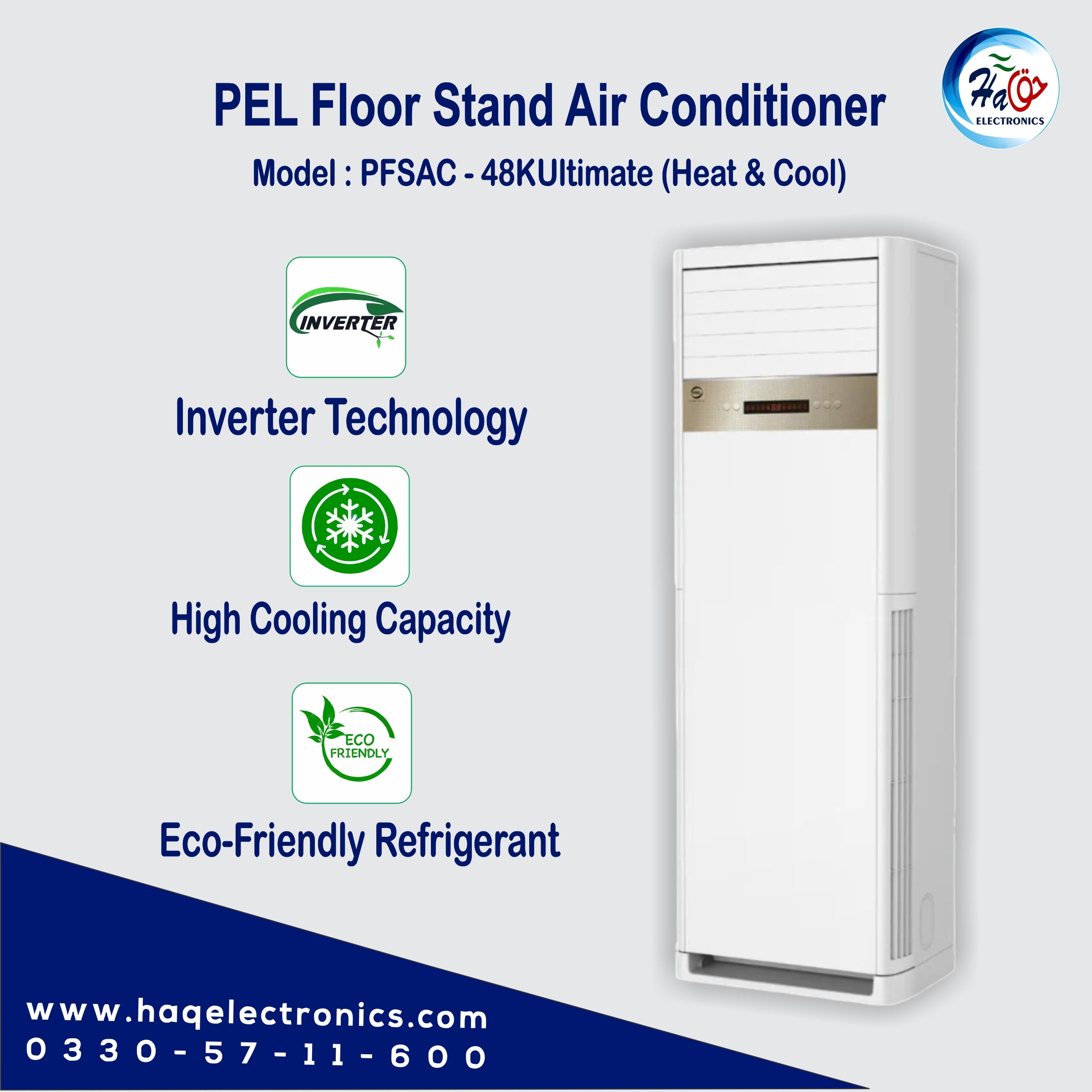 Upgrade your space with the PEL Floor Standing Air Conditioner PFSAC - 48K Ultimate Inv (Heat & Cool). Experience powerful year-round performance, energy savings, and a sleek design. Order now and enjoy unmatched comfort in every season!